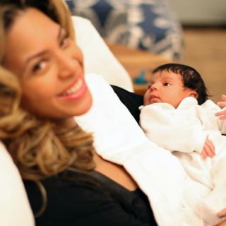 Son cinco fotos en las que se puede ver a la cantante sosteniendo a la pequeña en sus brazos, otra con Jaz-Z, un par de fotos de primer plano de la pequeña y una de las manos de madre e hija.