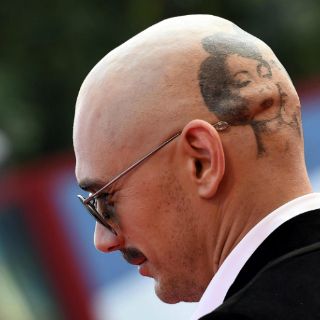 El impredecible actor y director se rasuró la cabeza para el papel de cinéfilo obsesivo en la cinta 'Zeroville', y se presentó en la alfombra roja luciendo en la nuca un tatuaje falso de Elizabeth Taylor y Montgomery Clift.