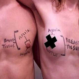Con plumón se señala que anatómicamente tienen las mismas partes y no obstante, el pezón de la mujer es censurado en Instagram.