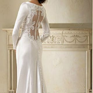 Durante el último filme, “Bella” (Kristen Stewart), en su boda con “Edward Cullen” (Robert Pattinson) utilizó un vestido blanco clásico, con 100 botones en la espalda, hecho con encaje y satín.