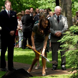 Entre aplausos, ambos pusieron tierra en la base de un árbol canadiense plantado para conmemorar el viaje real de nueve días a este país, y para la ocasión, la duquesa de Cambridge lució un exclusivo vestido gris de manga corta, publicó la revista "Hola!".