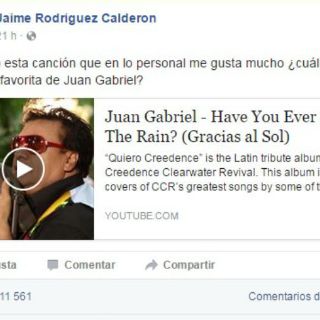 En otro mensaje alusivo a la muerte del cantante y compositor, publicó, "les dejo esta canción que en lo personal me gusta mucho (un enlace con el video de Have You Ever Seen The Rain), ¿cuál era su canción favorita de Juan Gabriel?".