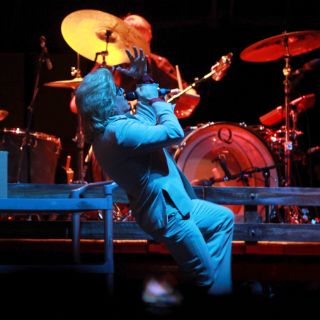 Para dar inicio al concierto, en la pantalla se proyectaron los rostros de cada uno de los integrantes de la agrupación, que luego desaparecieron para dar paso a un helicóptero.