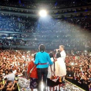 En el escenario, un grupo de indígenas apareció para dar testimonio del recibimiento simbólico de las donaciones que se harán para la comunidad a través de taquilla.