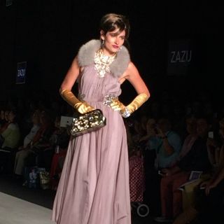 La primera propuesta de la tarde corrió a cargo de la firma Love Zazu quien despertó a la mujer fatalista en siluetas evocadoras y ostentosa joyería. La particularidad fueron las telas satinadas en binomio blanco y negro, pero como enfoque arriesgado y muy glam el color rosa palo. Destacaron los cortes rectos y entallados con faldas que enmarcan la femineidad en texturas lisas.