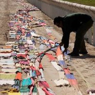 Tras desplegar la bufanda en una habitación del Hipódromo, un grupo de voluntarias ya deshacía parte de la hazaña y descosía porciones de la larga cadena para comenzar a ofrecer las prendas por aproximadamente un dólar cada una.