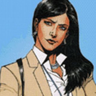 La estatua de Luisa Lane usó como modelo a la actriz Noel Neill, que interpretó el personaje en películas y una serie televisiva en las décadas de 1940 y 1950.