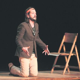 Una silla sobre una tarima café fue el único recurso escénico que necesitó el actor de Y tu mamá también para recrear todas las situaciones que repasa la obra escrita y dirigida por Alejandro Ricaño; además del acompañamiento de Darío Bernal en los sonidos, que iban desde el disparo de una cámara fotográfica hasta el resonar de los balazos.