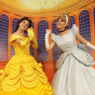 Envueltas en seda, organza, cuero, cristales y encajes, las princesas de Disney figuran como parte primordial de esta historia en la que ellas hacen de esta exposición su propio desfile.