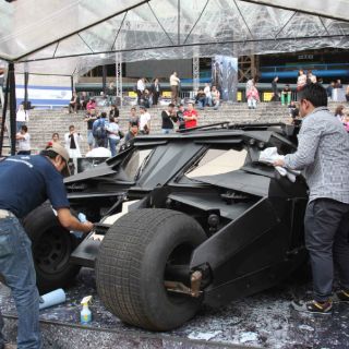 Algunos curiosos se acercaban al área donde se ubicaba el Batimóvil para tomar fotos del famoso vehículo, mientras una larga fila esperaba por un espacio exclusivo para poder tomar su foto.