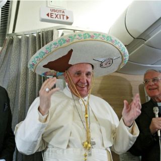 Francisco que hizo bromas sobre el futbol argentino y recibió con una sonrisa las cartas de algunos niños mexicanos, en un vuelo papal en el cual confesó haber sido conquistado por la comicidad de ''Cantinflas''.