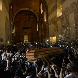 El cuerpo fue dispuesto en el altar y una fotografía de gran formato del cantante flanqueó el ataúd con un solo arreglo floral.