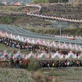BEIJING,. CHINA (07/FEB/2012).- Un dragón chino de 794 metros y medio, transportado a hombros por miles de personas, ha batido el récord Guinness a la carroza más larga del mundo, que ostentaba desde 2011 otra de Taiwan de 204 metros y 53 centímetros.