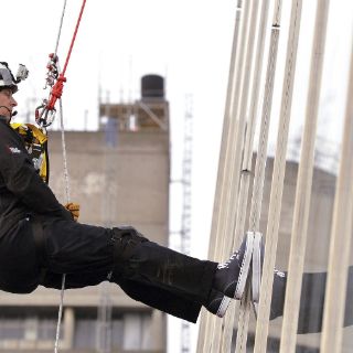 Efectuó un descenso con cuerdas de varios cientos de metros desde la azotea del rascacielos más alto de la Unión Europea
