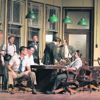 La escena pertenece a la obra 12 hombres en pugna que ayer se presentó en el Teatro Diana, a la mitad de su capacidad, pero con un público risueño, atento y embebido que fue testigo de la disputa que se mostraba sobre las tablas.