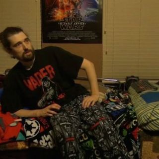 WASHINGTON, ESTADOS UNIDOS (06/NOV/2015).- Daniel Fleetwood, un enfermo terminal de cáncer de 32 años y residente en Texas (EU), cumplió su sueño al ver en una proyección exclusiva el último filme de la saga