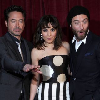 LONDRES, INGLATERRA (09/DIC/2011).- El actor estadounidense Robert Downey Jr., la actriz sueca Noomi Rapace y el británico Jude Law a su llegada al estreno europeo de la nueva entrega de la saga de Sherlock Holmes, A game of shadows, en el Empire Leicester Square de Londres.