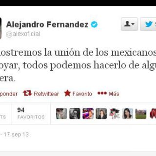 Los cantantes, Alejandro Fernández y Lucero, también han mostrado su preocupación. "Demostremos la unión de los mexicanos, hay q apoyar, todos podemos hacerlo de alguna manera." dijo el Potrillo.