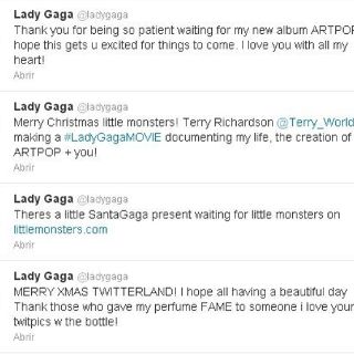 La intérprete de "Alejandro" escribió: "Feliz Navidad pequeños monstruos! Terry Richardson está haciendo una #LadyGagaMOVIE documentando mi vida, la creación de ARTPOP + ustedes!".