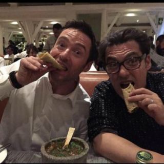 Jackman y el director Joe Wright posaron juntos en una instantánea en la que se les observa degustando de unos tacos junto a un molcajete con salsa verde.