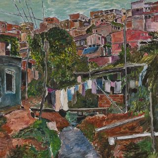 Dylan se ha centrado en el uso del acrílico como lo demuestra ahora con los cuadros brasileños que recrean el campo, ciudades y favelas.