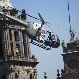 Sin Craig. Este martes los stunts de Bond y el villano continuaron su pelea en el helicóptero, escena filmada en la explanada del Zócalo capitalino.
