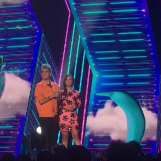"¿Cómo están? Bienvenidos, ¿están listos? Necesitamos que todos levanten sus manos", saludó esta dupla en el escenario del Auditorio Nacional, luego de que la banda Urband 5 cantara el tema inicial de la gala organizada por el canal Nickelodeon.