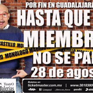 Teatro Galerías su monologo "Hasta que el miembro no se pare" en punto de las 20:21 horas, un texto escrito por él sobre la compleja sexualidad humana, pero vista desde la óptica de la comedia, de los primeros acercamientos que las personas tienen con su sexualidad hasta el matrimonio, las anatomías físicas, así como los problemas sexuales que acarrea la edad cuando se llega a una determinada etapa de la vida.
