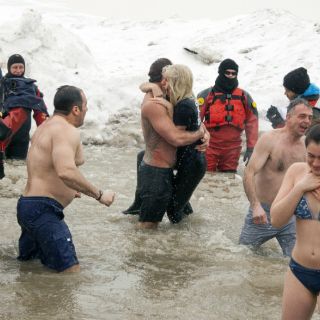 Ambos soportaron las bajas temperaturas del ambiente y el agua para apoyar la iniciativa de Special Olympics, una organización internacional que ayuda a personas con discapacidad psíquica.