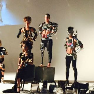 "Fusión con la pierna", comenta al indicar la prótesis que Urzi incorporó a los diseños que presenta en Milán, --unas armaduras futuristas metalizadas--, en las que no se esconde la falta de pierna y más bien se usa con mucha naturalidad.