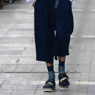 Con Pigalle, en una colección unisex diseñada en colaboración con Nike, las chanclas deportivas se llevaron igualmente con calcetines, una prenda también protagonista en el desfile de Dries Van Noten, que combinó con sandalias de cuero y con botines y pantalones cortos.