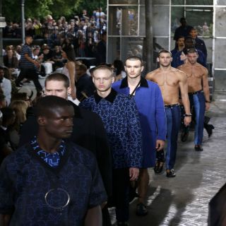 Graduado en 1999 en la escuela londinense de Central Saint Martins Academy, Tisci vestirá a los varones de mezclilla para su línea más informal, con variaciones de cuadros, rayas y estrellas que evocan la bandera norteamericana, pero en tonos de azul.