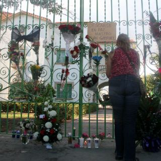 MORELIA, MICHOACÁN (28/AGO/2016).- Con flores, mensajes y veladoras afuera de la que fue su casa en Parácuaro, su pueblo natal, habitantes del lugar rinden tributo a Juan Gabriel, quien falleciera este domingo en el estado de California.