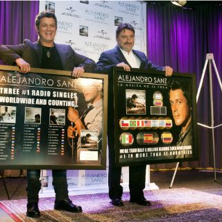 Sanz, durante la rueda de prensa organizada en el museo de los premios Grammy, recibió los discos de oro y multiplatino por las ventas de su disco "La música no se toca", así como las placas de reconocimiento por los tres números unos obtenidos en 17 países con los tres sencillos publicados hasta el momento.