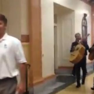 Mariachis siguen a un maestro durante todo el día