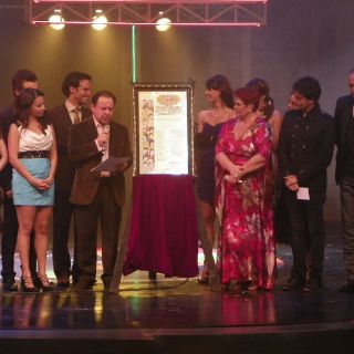 Los productores Federico González Compeán y Morris Gilbert agradecieron a la intérprete de Qué ganas de no verte nunca más su presencia con un reconocimiento especial por su trayectoria.
