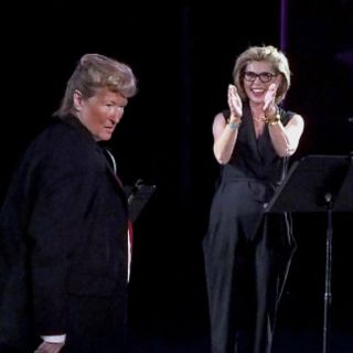 Un reportero del Times publicó en Twitter un video de Streep imitando a Trump en un dueto con la actriz Christine Baranski quien, ataviada en un traje sastre de pantalón, hizo de la precandidata demócrata Hillary Clinton. El par cantó "Brush Up Your Shakespeare", del musical de Cole Porter "Kiss Me, Kate".