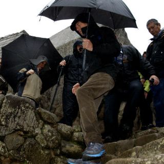 LIMA, PERÚ (14/OCT/2011).- El rockero británico Mick Jagger, quien realiza una visita turística a Perú junto a su esposa e hijo, recorrió este viernes en medio de lluvia y una densa neblina la ciudadela inca Machu Picchu en el Cusco, informó la policía.