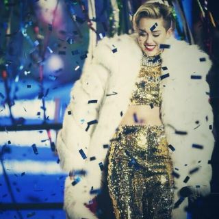 Cyrus compartió en Twitter una imagen del beso que le dio a Ryan Seacrest, presentador del evento de fin de año que se realizó en el Times Square.