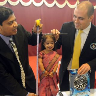 Jyoti Amge dio una estatura de 62.8 centímetros más pequeña que una niña promedio de dos años cuando el representante de Guinness que vino de Londres la midió en una ceremonia a la que asistieron 30 parientes y amigos en la localidad de Nagpur, en el estado de Maharashtra.