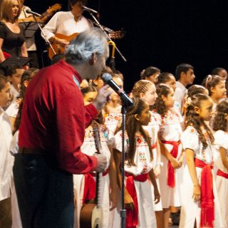 GUADALAJARA, JALISCO (12/JUN/2013).- Fue una noche especial para Paco Padilla. Con su fiel guitarra, la de siempre. Con sus músicos, compañeros de mil batallas. Pero en esta ocasión, haciendo equipo con los niños. De hecho, fueron ellos los que le dieron forma y color a los dos conciertos que el cantautor ofreció en el Teatro Guadalajara del IMSS, este 11 y 12 de junio.