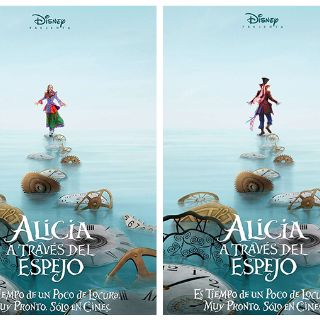 En los pósters podemos ver a Alicia, interpretada por Wasikowska y aun Sombrerero Loco, encarnado por Johnny Depp, de espaldas sobre los restos de un reloj en medio del océano.