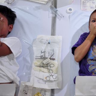 En cada una, tres o cuatro pequeños permanecían tumbados ocupando el ancho mientras los doctores manejaban sin descanso tijeras, hilo y aguja con la ayuda del personal de enfermería.