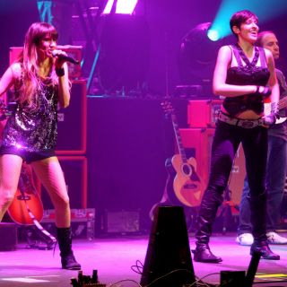 GUADALAJARA, JALISCO (18/OCT/2011).- El grupo Ha*Ash, luego de realizar una actuación en el marco de las actividades de Los Juegos Panamericanos Guadalajara 2011, recibió por parte de Hermes Music una guitarra decorada por artesanos indígenas.