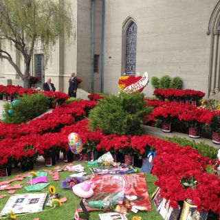 En el cementerio Forest Lawn, Glendale, en Los Ángeles, miles de rosas rojas fueron depositadas como parte de una campaña viral que se lanzó en redes sociales.