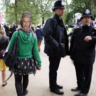 Unos cinco mil agentes estaban de servicio para controlar a la enorme multitud que ondeaba banderitas junto a unos mil soldados a lo largo del trayecto que iba desde la abadía de Westminster a la residencia londinense de la reina Isabel II, el Palacio de Buckingham.