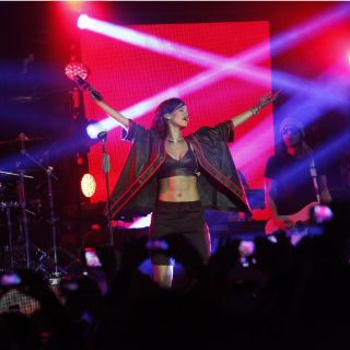 Vestida con un sensual top negro y esta vez con el pelo oscuro y largo, la artista, de 24 años, salió al escenario del Plaza Condesa de la capital mexicana y arrancó con "Cockiness", tema de su anterior álbum "Talk, talk, talk".