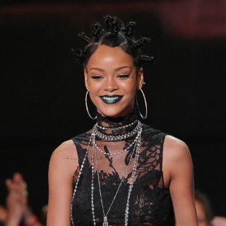 Rihanna sorprendió con un ''look'' gótico en la gala de los iHeartRadio Music Awards en la ciudad de Los Ángeles.