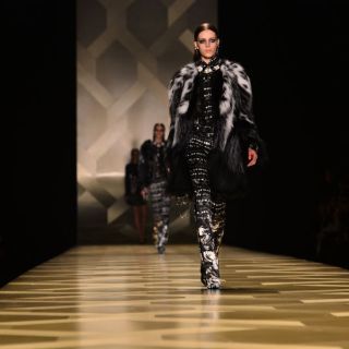 Por último, Roberto Cavalli se encargó de teñir la pasarela milanesa de negro con diseños muy elaborados y recargados, con gran variedad de estampados y texturas, con encaje, tachuelas metálicas y brocados.