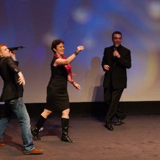 Inspirada por su propio cortometraje, la productora lanzó aviones de papel, cosa que no le hizo gracia a la gente de seguridad del Teatro Dolby